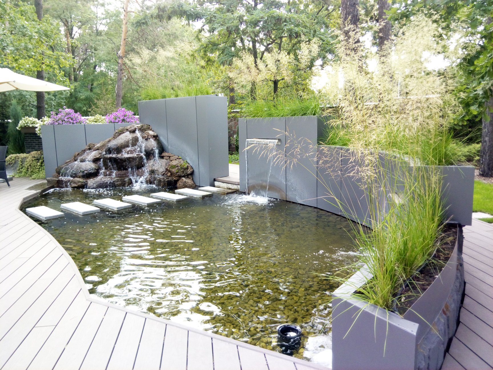 МС Ландшафт занимается устройством водяных участков. Мы осуществляем полный комплекс мероприятий, касающихся этого направления деятельности. Проектирование, подбор необходимых материалов и систем, создание бассейнов и водовместилищ, оснащение водой и другими услугами для оформления идеального декора для дачи, загородного коттеджа или любой области вокруг водной поверхности. Наше агентство предоставляет сервисы обустройства по приемлемой стоимости, на которую влияет география локации, стройматериалы, тип строительных мероприятий и их количество.